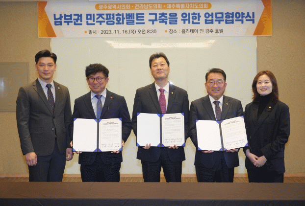 [¹Ìµð¾îÀü³² Á¦°¥´ëÁ¾ ±âÀÚ]±¤ÁÖ±¤¿ª½ÃÀÇȸ´Â 16ÀÏ ¿ÀÀü Ȧ¸®µ¥ÀÌÀÎ ±¤ÁÖ È£ÅÚ¿¡¼ Àü¶ó³²µµÀÇȸ¡¤Á¦ÁÖÆ¯º°ÀÚÄ¡µµÀÇȸ(ÀÇÀå ±è°æÇÐ)¿Í ¡®³²ºÎ±Ç ¹ÎÁÖÆòȺ§Æ® ±¸ÃàÀ» À§ÇÑ ¾÷¹«Çù¾à½Ä¡¯À» °³ÃÖÇß´Ù°í ¹àÇû´Ù. À̳¯ ¾÷¹«Çù¾àÀº ¿ª»çÀûÀ¸·Î¡¦