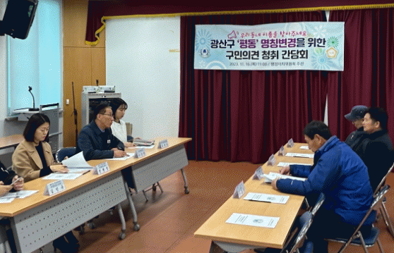 [¹Ìµð¾îÀü³² ±èÁ¤¿ì ±âÀÚ]±¤»ê±¸ÀÇȸ ÇàÁ¤ÀÚÄ¡À§¿øÈ¸°¡ 16ÀÏ Æòµ¿ ÇàÁ¤º¹Áö¼¾ÅÍ¿¡¼ ¡®Æòµ¿¡¯ÀÇ ÇàÁ¤µ¿ ¸íĪÀ» ¡®Æòµ¿µ¿¡¯À¸·Î º¯°æÇϱâ À§ÇÑ ÁֹΠ°£´ãȸ¸¦ °³ÃÖÇß´Ù. À̳¯ °£´ãȸ¿¡´Â Æòµ¿Áö¿ª ÁֹεéÀ» ºñ·ÔÇØ À¯°ü ´Üü, ±¤»ê±¸ÀÇ¿ø¡¦