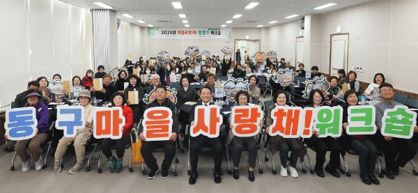 [¹Ìµð¾îÀü³² ±èÁ¤¿ì ±âÀÚ]±¤ÁÖ µ¿±¸´Â ¸¶À»»ç¶ûä Ȱµ¿°¡µéÀÌ Çѵ¥ ¸ð¿© ¿ì¼ö»ç·Ê¸¦ °øÀ¯ÇÏ°í »ç¶ûä ¿î¿µ¿¡ ´ëÇØ ³íÀÇÇÏ´Â ¡®¸¶À»»ç¶ûä Ȱµ¿°¡ ¿öÅ©¼ó¡¯À» ÁøÇàÇß´Ù°í ¹àÇû´Ù. À̳¯ ¿öÅ©¼óÀº ÀÓÅà ±¸Ã»ÀåÀÌ Æ¯° °»ç·Î ³ª¼ ¸¶À»»ç¶û¡¦