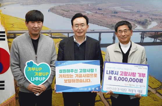 [¹Ìµð¾îÀü³² Á¦°¥´ëÁ¾ ±âÀÚ]Àü³² ³ªÁֽô ¢ßÇѱ¹È¯°æ»ç¾÷´Ü ÃÖ¿µ±â ´ëÇ¥°¡ °íÇâ»ç¶û±âºÎ±Ý ÃÖ°í Çѵµ ±Ý¾×ÀÎ 500¸¸ ¿øÀ» ±âŹÇß´Ù°í 15ÀÏ ¹àÇû´Ù. ¢ßÇѱ¹È¯°æ»ç¾÷´ÜÀº ÈÇÐÁ¦Ç° Á¦Á¶ ¼±µµ ±â¾÷À¸·Î Ã˸ÅÁ¦, ¿°ÈÄ®½· µîÀ» °³¹ß ¹× »ý»ê¡¦