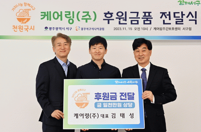 [¹Ìµð¾îÀü³² ±èÁ¤¿ì ±âÀÚ]±èÀ̰ ¼±¸Ã»ÀåÀº 15ÀÏ ¿ÀÀü ÄɾÁÖ°£º¸È£¼¾Åͱ¤ÁÖ¼±¸Á¡¿¡¼ Äɾ(ÁÖ)(´ëÇ¥ ±èżº)·ÎºÎÅÍ °¡Ä¡³ª´® ÇÔ²²¼±¸¸¦ À§ÇÑ Ãµ¿ø±¹½Ã»ç¾÷ ÈÄ¿ø±Ý 1,000¸¸¿øÀ» ±âŹ¹Þ°í °¨»çÀÇ ¸¶À½À» ÀüÇß´Ù.