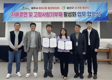 [¹Ìµð¾îÀü³² ±èÁ¤¿ì ±âÀÚ]±¤»ê±¸ ½Å°¡µ¿ ÅëÀå´ÜÀº 10ÀÏ ½Å°¡µ¿ ÇàÁ¤º¹Áö¼¾ÅÍ¿¡¼ Á¦Áֽà ¿ë´ã2µ¿ ÅëÀåÇùÀÇȸ¿Í ÀڸŰῬÀ» ÇÏ°í °íÇâ»ç¶û±âºÎÁ¦ Ȱ¼ºÈ¸¦ À§ÇÑ ¾÷¹« Çù¾à½ÄÀ» °¡Á³´Ù. ±¤»ê±¸ÀÇȸÀÇ Á¦¾ÈÀ¸·Î ¼º»çµÈ À̹ø Çù¾àÀÇ ÀÚ¸®¿¡ ¡¦