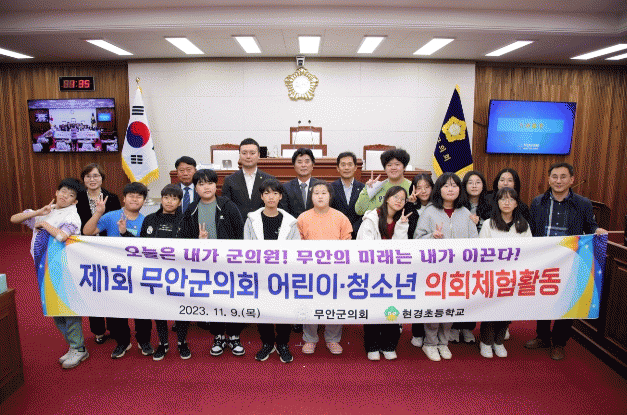 [¹Ìµð¾îÀü³² ±èÆÇ±¹ ±âÀÚ]¹«¾È±ºÀÇȸ´Â Áö³ 9ÀÏ º»È¸ÀÇÀå¿¡¼ Çö°æÃʵîÇб³ Çлý 14¸íÀ» ´ë»óÀ¸·Î ¡®Á¦1ȸ ¾î¸°ÀÌ¡¤Ã»¼Ò³â ÀÇȸüÇèȰµ¿¡¯À» ¿î¿µÇß´Ù. À̳¯ ÀÇȸüÇèȰµ¿Àº ÇлýµéÀÌ Áö¹æÀÇȸÀÇ ±â´É°ú ¿ªÇÒÀ» Á÷Á¢ üÇèÇÔÀ¸·Î½á ¹ÎÁÖ¡¦