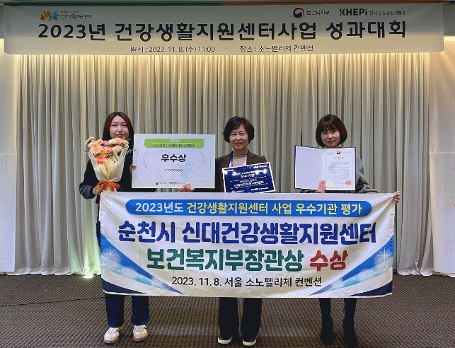 [¹Ìµð¾îÀü³² ÀÓ¼º¿Ï ±âÀÚ]¼øÃµ½Ã ½Å´ë°Ç°»ýȰÁö¿ø¼¾ÅÍ´Â 8ÀÏ º¸°Çº¹ÁöºÎ ¹× Çѱ¹°Ç°ÁõÁø°³¹ß¿ø¿¡¼ ÁÖÃÖÇÑ ¡®2023³â °Ç°»ýȰÁö¿ø¼¾ÅÍ»ç¾÷ ¼º°ú´ëȸ¡¯¿¡¼ ¿ì¼ö±â°üÀ¸·Î ¼±Á¤µÅ º¸°Çº¹ÁöºÎ Àå°ü»óÀ» ¼ö»óÇß´Ù. À̹ø ¼º°ú´ëȸ´Â Àü±¹ 8¡¦