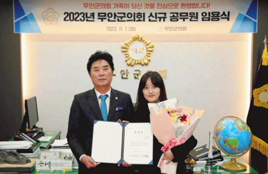 [¹Ìµð¾îÀü³² ±èÆÇ±¹ ±âÀÚ]¹«¾È±ºÀÇȸ´Â 11¿ù 7ÀÏ ±ºÀÇȸ ÀÇÀå½Ç¿¡¼ ½Å±Ô ÀÓ¿ëÇÑ Á¤Ã¥Áö¿ø°ü 1¸í(ÇàÁ¤9±Þ)¿¡°Ô ÀÓ¿ëÀåÀ» ¼ö¿©Çß´Ù. À̳¯ ÀÓ¿ëµÈ Á¤Ã¥Áö¿ø°üÀº ¡®2023³âµµ Á¦2ȸ Àü¶ó³²µµ Áö¹æ°ø¹«¿ø °ø°³°æÀï ÀÓ¿ë½ÃÇ衯¿¡¼ ¼±¹ßµÈ Àοø¡¦