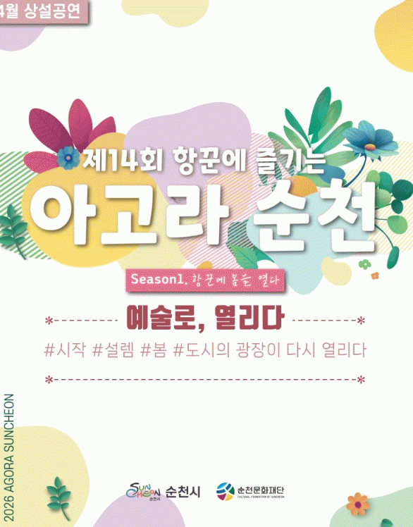 [¹Ìµð¾îÀü³² ÀÓ¼º¿Ï ±âÀÚ] (Àç)¼øÃµ¹®ÈÀç´ÜÀº ¡®2026 Çײۿ¡ Áñ±â´Â ¾Æ°í¶ó ¼øÃµ¡¯ »ó¼³°ø¿¬À» 4¿ùºÎÅÍ º»°Ý ¿î¿µÇÑ´Ù°í ¹àÇû´Ù. ¿ÃÇØ °ø¿¬Àº Áö³ 3¿ù ¿Àµð¼ÇÀ» ÅëÇØ ¼±Á¤µÈ 100°³ ÆÀÀÌ Âü¿©Çϸç, 4¿ù¿¡´Â ¡®Çײۿ¡, º½À» ¿´Ù¡¯¸¦ ÁÖ¡¦