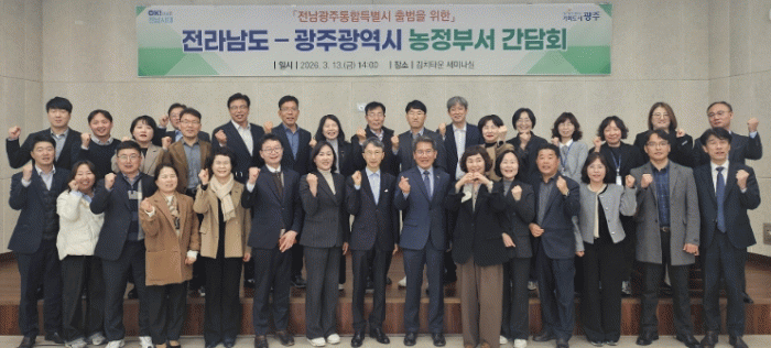 [¹Ìµð¾îÀü³² Á¦°¥´ëÁ¾ ±âÀÚ]Àü¶ó³²µµ¿Í ±¤ÁÖ±¤¿ª½Ã´Â 13ÀÏ ±¤ÁÖ±èġŸ¿î¿¡¼ Àü³²±¤ÁÖÅëÇÕÆ¯º°½Ã Ãâ¹üÀ» ´ëºñÇÑ ³óÁ¤ºÎ¼ °£´ãȸ¸¦ ¿°í ³óÁ¤ Çù·Â °úÁ¦¸¦ ³íÀÇÇß´Ù. °£´ãȸ¿¡´Â Àü³²µµ¿Í ±¤Áֽà ³óÁ¤¾÷¹«¸¦ ´ã´çÇÏ´Â ±¹¡¤°úÀå°ú ÆÀÀå µî¡¦