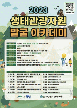 [¹Ìµð¾îÀü³² °í±Ô¼® ±âÀÚ](Àç)¿µ¾Ï¹®È°ü±¤Àç´ÜÀº ±¹¸³»ýÅÂŽ¹æ¿øÀÇ °³¼³¿¡ µû¸¥ Áö¿ª»ýŰü±¤ÀÇ ¹ßÀüÀ» ±º¹Î°ú ÇÔ²² µµ¸ðÇϱâ À§ÇÑ¡®2023 »ýŰü±¤ÀÚ¿ø ¹ß±¼ ¾ÆÄ«µ¥¹Ì ±³À°ÇÁ·Î±×·¥¡¯Âü¿©ÀÚ¸¦ ¸ðÁýÇÑ´Ù. À̹ø ±³À°ÇÁ·Î±×·¥Àº ¿À´Â 11¿ù¡¦