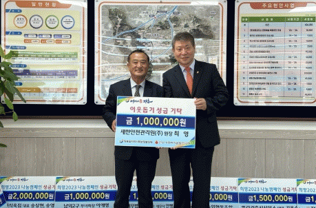 [¹Ìµð¾îÀü³² Á¦°¥´ëÁ¾ ±âÀÚ]»õÇѾÈÀü°ü¸®¿ø(ÁÖ) ¿øÀå(ÃÖ¿µ)ÀÌ 26ÀÏ ÀåÈïÀ¾ÇàÁ¤º¹Áö¼¾Å͸¦ ¹æ¹®ÇØ Ãë¾à°èÃþÀ» À§ÇØ »ç¿ëÇØ ´Þ¶ó¸ç ¼º±Ý 100¸¸¿øÀ» ±âŹÇß´Ù. À̳¯ ±âŹÇÑ ¼º±ÝÀº ÀåÈïÀ¾Áö¿ª»çȸº¸ÀåÇùÀÇü µ¿Àý±â Ãë¾à°èÃþÀ» ´ë»óÀ¸·Î Ãß¡¦