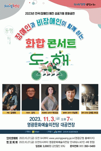 [¹Ìµð¾îÀü³² Á¦°¥´ëÁ¾ ±âÀÚ]¿µ±¤±ºÀº ¿À´Â 11¿ù 3ÀÏ ¿ÀÈÄ 7½Ã ¿µ±¤¹®È¿¹¼úÀÇÀü´ç ´ë°ø¿¬Àå¿¡¼ 2023³â Àü±¹(Àå¾ÖÀÎ)üÀü ¼º°ø±â¿ø ¹®È°ø¿¬À¸·Î Àå¾ÖÀΰú ºñÀå¾ÖÀÎÀÌ ÇÔ²²Çϴ¡®ÈÇÕ ÄܼƮ µ¿Ç࡯À» °ø¿¬ÇÑ´Ù. ÈÇÕ ÄܼƮ µ¿ÇàÀº ¼º¡¦