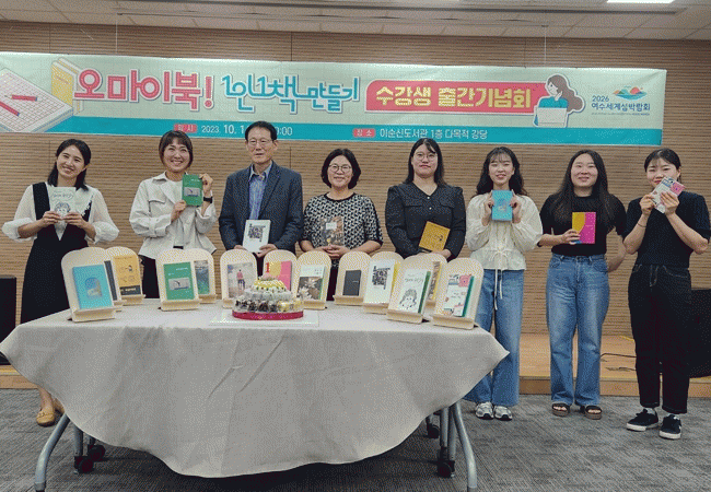 [¹Ìµð¾îÀü³² ÀüÇü¼º ±âÀÚ]¿©¼ö½Ã°¡ ÃÖ±Ù À̼ø½Åµµ¼°ü¿¡¼ ¡®¿À¸¶À̺Ï! 1ÀÎ 1Ã¥ ¸¸µé±â¡¯ ÇÁ·Î±×·¥ ¼ö°»ýµéÀÌ ¿Ï¼ºÇÑ µ¶¸³ÃâÆÇ¹° 12±ÇÀÇ Ãâ°£À» ÃàÇÏÇÏ´Â ±â³ä½ÄÀ» ¿¾ú´Ù. ¡®¿À¸¶À̺Ï!¡¯Àº ³ª¸¸ÀÇ Æ¯º°ÇÑ Ã¥À» ¸¸µé°í ½ÍÀº ¿©¼ö½Ã¹ÎÀ»¡¦