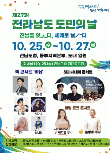 [¹Ìµð¾îÀü³² Á¦°¥´ëÁ¾ ±âÀÚ]Àü¶ó³²µµ´Â 22°³ ½Ã±ºÀÌ ÇÔ²²ÇÏ´Â ¼ÒÅë°ú ÈÇÕÀÇ ÀåÀÎ Á¦27ȸ Àü¶ó³²µµ µµ¹ÎÀÇ ³¯ ±â³äÇà»ç¸¦ 25ÀϺÎÅÍ 27ÀϱîÁö µµÃ» ¹× µ¿ºÎû»ç ÀÏ¿ø¿¡¼ ÆîÄ£´Ù°í ¹àÇû´Ù. µµ¹ÎÀÇ ³¯Àº ¡®Àü³²À» ÀÕ´Ù, ¼¼°è·Î ³¯´Ù¡¯¸¦ ÁÖ¡¦