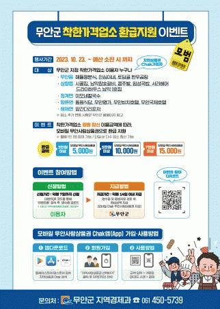[¹Ìµð¾îÀü³² ±èÆÇ±¹ ±âÀÚ]Àü³² ¹«¾È±ºÀº Àú·ÅÇÑ °¡°ÝÀ¸·Î ¹°°¡¾ÈÁ¤¿¡ ±â¿©Çϰí ÀÖ´Â ÂøÇѰ¡°Ý¾÷¼Ò Ȱ¼ºÈ¸¦ À§ÇÑ Çà»ç¸¦ ¿À´Â 23ÀϺÎÅÍ ¿¹»ê ¼ÒÁø ½Ã±îÁö ½Ç½ÃÇÑ´Ù. À̹ø Çà»ç´Â ¹«¾È±º ÁöÁ¤ ÂøÇѰ¡°Ý¾÷¼Ò ÀÌ¿ëÀÚ¸¦ ´ë»óÀ¸·Î ¿ùº° Çջꡦ