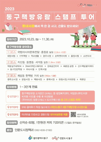 [¹Ìµð¾îÀü³² ±èÁ¤¿ì ±âÀÚ]±¤ÁÖ µ¿±¸´Â Áö¿ª ¼Á¡ ÀÌ¿ë Ȱ¼ºÈ¿Í ÀÏ»ó ¼Ó µ¶¼¹®È È®»êÀ» À§ÇØ Ã¥ ¹®È°ø°£ Áöµµ ¡®µ¿±¸ Ã¥¹æ À¯¶÷¡¯À» ¹ß°£Çϰí 23ÀϺÎÅÍ 11¿ù 30ÀϱîÁö ½ºÅÆÇÁ Åõ¾î¸¦ ÁøÇàÇÑ´Ù°í ¹àÇû´Ù. ¡®µ¿±¸ Ã¥¹æ À¯¶÷¡¯ Áöµµ¿¡´Â¡¦