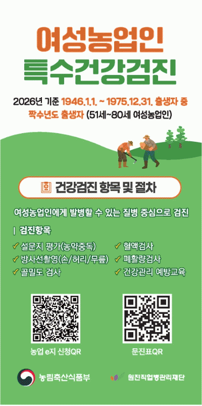 [¹Ìµð¾îÀü³² Á¦°¥´ëÁ¾ ±âÀÚ]¿ËÁø±ºÀº ¿ÃÇØ óÀ½À¸·Î ¿©¼º³ó¾÷ÀÎÀÇ °Ç°±Ç º¸È£¸¦ À§ÇÑ'¿©¼º³ó¾÷ÀΠƯ¼ö°Ç°°ËÁø»ç¾÷'À» º»°Ý ½ÃÇàÇÑ´Ù°í ¹àÇû´Ù. À̹ø »ç¾÷Àº ³óÀÛ¾÷À¸·Î ÀÎÇØ ±Ù°ñ°Ý°è Áúȯ µî Á÷¾÷¼º Áúȯ¿¡ Ãë¾àÇÑ ¿©¼º³ó¾÷ÀÎÀ» ´ë»ó¡¦