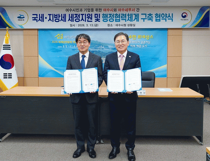 [¹Ìµð¾îÀü³² ÀüÇü¼º ±âÀÚ]¿©¼ö½Ã°¡ ¿©¼ö¼¼¹«¼(¼Àå ±èÈÆ)¿Í 13ÀÏ ¿©¼ö½Ãû »óȲ½Ç¿¡¼ ¡®±¹¼¼¡¤Áö¹æ¼¼ ¼¼Á¤ Áö¿ø ¹× ÇàÁ¤ Çù·Âü°è ±¸ÃàÀ» À§ÇÑ ¾÷¹«Çù¾à(MOU)¡¯À» ü°áÇß´Ù°í ¹àÇû´Ù. ¿©¼ö½Ã¿Í ¿©¼ö¼¼¹«¼´Â Áö¿ª°æÁ¦ÀÇ ¾î·Á¿òÀ» ±Øº¹¡¦