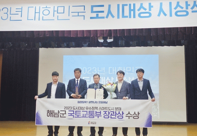 [¹Ìµð¾îÀü³² Á¦°¥´ëÁ¾ ±âÀÚ]ÇØ³²±ºÀÌ 2023³â ´ëÇѹα¹ µµ½Ã´ë»ó¿¡¼ ½º¸¶Æ®µµ½Ã ¿ì¼öÁ¤Ã¥ºÐ¾ß ±¹Åä±³ÅëºÎÀå°ü»óÀ» ¼ö»óÇß´Ù. ´ëÇѹα¹ µµ½Ã´ë»óÀº ±¹Åä±³ÅëºÎ°¡ ¸Å³â Àü±¹ ±âÃÊÀÚÄ¡´Üü¸¦ ´ë»óÀ¸·Î µµ½ÃÀÇ Áö¼Ó°¡´É¼º ¹× »ýȰ ÀÎÇÁ¶ó ¼öÁØ¡¦