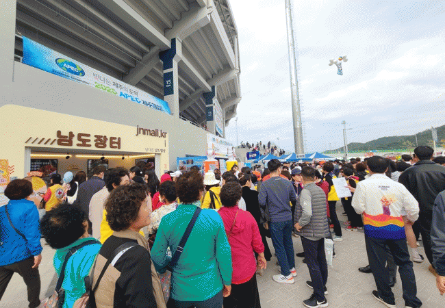[¹Ìµð¾îÀü³² Á¦°¥´ëÁ¾ ±âÀÚ]Á¦104ȸ Àü±¹Ã¼Àü ±â°£ ÁÖ °æ±âÀåÀÎ ¸ñÆ÷Á¾ÇÕ°æ±âÀå ÀÏ¿ø¿¡¼ ¿î¿µ ÁßÀÎ 83°³ÀÇ ´Ùä·Î¿î È«º¸°ü¿¡ °ü¶÷°´µéÀÇ ¹ß±æÀÌ À̾îÁö¸é¼ Å« Àαâ¸ôÀ̸¦ Çϰí ÀÖ´Ù. ¸ñÆ÷Á¾ÇÕ°æ±âÀå ¾Õ ºÎÁö¿¡ ¼³Ä¡µÈ È«º¸°ü¿¡´Â °ü¡¦