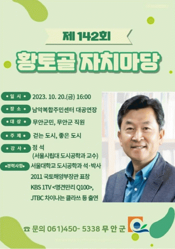 [¹Ìµð¾îÀü³² ±èÆÇ±¹ ±âÀÚ]Àü³² ¹«¾È±ºÀº ¿À´Â 20ÀÏ Á¤¼® ¼¿ï½Ã¸³´ë ±³¼ö¸¦ ÃÊûÇÏ¿© ¡®°È´Â µµ½Ã, ÁÁÀº µµ½Ã¡¯¸¦ ÁÖÁ¦·Î Á¦142ȸ ȲÅä°ñ ÀÚÄ¡¸¶´çÀ» °³ÃÖÇÑ´Ù. Á¤¼® ¼¿ï½Ã¸³´ë µµ½Ã°øÇаú ±³¼ö´Â 20¿© ³â°£ µµ½Ã °ø°£°ú °È´Â µµ½Ã¸¦ ¡¦