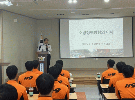 [¹Ìµð¾îÀü³² Á¦°¥´ëÁ¾ ±âÀÚ]È«¿µ±Ù Àü³²¼Ò¹æº»ºÎÀåÀÌ 12ÀÏ Àü³²¼Ò¹æ Á¦17±â ½Å±Ô ÀÓ¿ëÀÚ 63¸íÀ» ´ë»óÀ¸·Î ¼Ò¹æÀÇ Á¤Ã¥ ¹æÇâ°ú Àü³²¼Ò¹æÀÇ ¹Ì·¡ºñÀüÀ̶õ ÁÖÁ¦·Î Ưº°°ÀǸ¦ ÁøÇàÇß´Ù. Áö³ 9¿ù 11ÀÏ Àü³²¼Ò¹æÇб³¿¡ ÀÔ±³ÇÑ ½ÅÀÓ ±³À°»ýµé¡¦