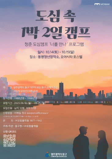 [¹Ìµð¾îÀü³² ±èÁ¤¿ì ±âÀÚ]±¤ÁÖ µ¿±¸´Â ¿À´Â 14~15ÀÏ ¾çÀϰ£ ¹ÌÈ¥ ³²³à°¡ ¦À» ÀÌ·ï ÁøÇàÇÏ´Â ¡®Ã»Ãá µµ½É Ä·ÇÁ! ³Ê¸¦ ¸¸³ª¡¯ ÇÁ·Î±×·¥ÀÌ ÀÔ¼Ò¹®À» Ÿ¸ç ´ë¹ÚÀ» ¿¹°íÇϰí ÀÖ´Ù°í ¹àÇû´Ù. µ¿±¸ û³âÂü¿©À§¿øÈ¸ÀÇ Á¦¾ÈÀ¸·Î ±âȹµÈ À̹ø ÇÁ¡¦