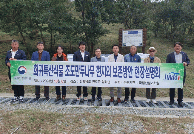 [¹Ìµð¾îÀü³² Á¦°¥´ëÁ¾ ±âÀÚ]Áøµµ±ºÀÌ Áö³ 6ÀÏ, ±¹¸³¼ö¸ñ¿ø°ú ÇÔ²² Èñ±ÍƯ»ê½Å¹° Á¶µµ¸¸µÎ³ª¹« ÇöÁö¿Ü º¸Á¸¹æ¾È ÇöÀå¼³¸íȸ¸¦ ½Ç½ÃÇß´Ù. Á¶µµ¸¸µÎ³ª¹«´Â 1983³â Áøµµ±º Á¶µµ¸é¿¡¼ »õ·Ó°Ô ¹ß°ßµÅ Çѹݵµ¿¡¼¸¸ ÀÚ»ýÇÏ´Â 1¼Ó 1Á¾ÀÇ °íÀ¯Á¾¡¦