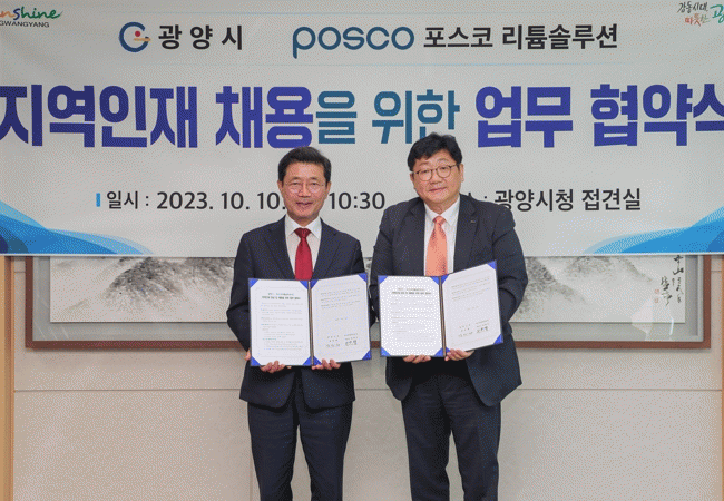 [¹Ìµð¾îÀü³² ÀÓ¼º¿Ï ±âÀÚ]±¤¾ç½Ã´Â 10ÀÏ ½Ãû Á¢°ß½Ç¿¡¼ Æ÷½ºÄÚ¸®Æ¬¼Ö·ç¼Ç°ú Áö¿ªÀÎÀç ¾ç¼º°ú ä¿ëÀ» À§ÇÑ ¾÷¹«Çù¾àÀ» ü°áÇß´Ù°í ¹àÇû´Ù. À̳¯ Çù¾à½Ä¿¡´Â Á¤ÀÎÈ ±¤¾ç½ÃÀå°ú ¹ÚÈñ¼® Æ÷½ºÄÚ¸®Æ¬¼Ö·ç¼Ç ´ëÇ¥ÀÌ»ç »çÀå µî °ü·ÃÀÚ°¡ Âü¼®¡¦