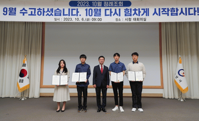 [¹Ìµð¾îÀü³² ÀÓ¼º¿Ï ±âÀÚ]Á¤ÀÎÈ ±¤¾ç½ÃÀåÀº Áö³ 6ÀÏ ½Ãû ´ëȸÀǽǿ¡¼ 2023³â 10¿ù Á¤·Ê Á¶È¸¸¦ °³ÃÖÇß´Ù. À̳¯ Á¶È¸¿¡¼ Á¤ ½ÃÀåÀº ¸ÃÀº¹Ù ¾÷¹«¸¦ ¼º½ÇÈ÷ ÃßÁøÇÑ ½ÃÁ¤¹ßÀü À¯°ø Á÷¿ø 5¸í¿¡°Ô ǥâÀåÀ» ¼ö¿©Çß´Ù. Á¤ ½ÃÀåÀº ¸ÕÀú ¡°¡¦