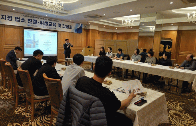 [¹Ìµð¾îÀü³² °í±Ô¼® ±âÀÚ]¸ñÆ÷½Ã°¡ Æòȱ¤Àå ¸ÀÀÇ °Å¸® ¾÷¼Ò(14°³¼Ò)ÀÇ ¿µ¾÷ÁÖ¸¦ ´ë»óÀ¸·Î Ä£Àý¡¤À§»ý ±³À° ¹× °£´ãȸ¸¦ °³ÃÖÇß´Ù. Áö³ 5ÀÏ ¸ñÆ÷ ¼§±×¸®¾Æ È£ÅÚ¿¡¼ ¿¸° À̹ø ±³À°°ú °£´ãȸ´Â ³²µµÀ½½Ä°Å¸® ¸íÇ°È »ç¾÷ ÃßÁø°ú Àü±¹(À塦