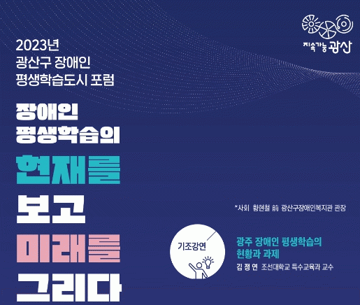 [¹Ìµð¾îÀü³² ±èÁ¤¿ì ±âÀÚ]±¤ÁÖ ±¤»ê±¸°¡ 13ÀÏ ¿ÀÀü ±¤ÁÖ¿©ÀÚ´ëÇб³ ±¹Á¦È¸ÀÇÀå¿¡¼ ¡®2023 ±¤»ê±¸ Àå¾ÖÀÎ Æò»ýÇнÀµµ½Ã Æ÷·³¡¯À» °³ÃÖÇÑ´Ù. Æ÷·³Àº ±³À°ºÎ »êÇÏ ±¹¸³Æ¯¼ö±³À°¿ø ÁÖ°ü ¡®2023³â Àå¾ÖÀÎ Æò»ýÇнÀµµ½Ã¡¯·Î ½Å±Ô ÁöÁ¤µÊ¿¡ µû¡¦