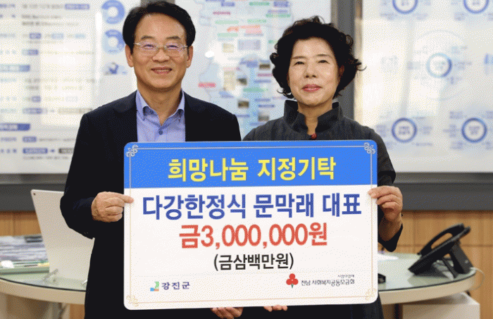 [¹Ìµð¾îÀü³² °í±Ô¼® ±âÀÚ]°Áø ´Ù°ÇÑÁ¤½Ä ¹®¸··¡ ´ëÇ¥°¡ Áö³´Þ 27ÀÏ °ü³» ¾î·Á¿î ÀÌ¿ôÀ» À§ÇØ ½á´Þ¶ó¸ç 300¸¸¿øÀ» °Áø±º¿¡ ±âŹÇß´Ù. °Áø±º ´ëÇ¥ ÇÑÁ¤½ÄÁýÀÎ ´Ù°ÇÑÁ¤½ÄÀº 2015³â ³ó½ÄǰºÎ ¿ì¼ö¿Ü½Ä¾÷Áö±¸ ÁöÁ¤ ¡®¿À°¨¸¸Á· ÇÑÁ¤½Ä ¡¦