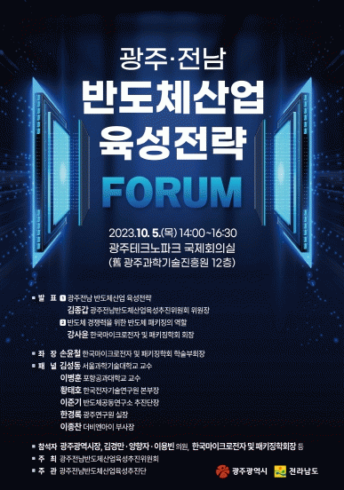 [¹Ìµð¾îÀü³² Á¦°¥´ëÁ¾ ±âÀÚ]±¤ÁÖ±¤¿ª½Ã´Â ¿À´Â 10¿ù5ÀÏ ¿ÀÈÄ 2½Ã ±¤ÁÖÅ×Å©³ëÆÄÅ© ±¹Á¦È¸Àǽǿ¡¼ ¡®±¤ÁÖ¡¤Àü³² ¹ÝµµÃ¼»ê¾÷ À°¼ºÀü·« Æ÷·³¡¯À» °³ÃÖÇÑ´Ù. À̳¯ Æ÷·³Àº °±âÁ¤ ±¤ÁÖ½ÃÀå°ú ±èÁ¾°© ±¤ÁÖ¡¤Àü³²¹ÝµµÃ¼»ê¾÷À°¼ºÃßÁøÀ§¿øÀå, ±è°æ¡¦