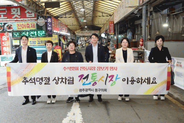 [¹Ìµð¾îÀü³² ±èÁ¤¿ì ±âÀÚ]±¤ÁÖ µ¿±¸ÀÇȸ´Â Áö³ 26ÀÏ Ãß¼® ¸íÀýÀ» ¸Â¾Æ ÀüÅë½ÃÀå À庸±â Çà»ç¸¦ ÁøÇàÇß´Ù°í ¹àÇû´Ù. ±èÀç½Ä ÀÇÀåÀ» ºñ·ÔÇÑ ÀÇ¿øµéÀº ÃÖ±Ù °æ±â ºÒȲÀ¸·Î ¾î·Á¿òÀ» °Þ°í ÀÖ´Â °ü³» ÀüÅë½ÃÀåÀ» ã¾Æ Ãß¼® ¸íÀý Â÷·Ê»ó¿¡ ¿Ã¡¦