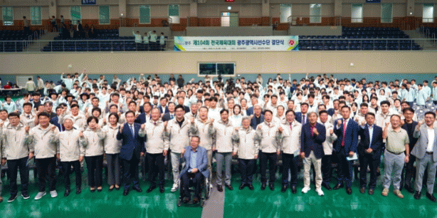 [¹Ìµð¾îÀü³² Á¦°¥´ëÁ¾ ±âÀÚ] ±¤ÁÖ±¤¿ª½ÃüÀ°È¸(ȸÀå Àü°©¼ö)°¡ 26ÀÏ ¿ÀÈÄ 2½Ã ºû°íÀ»Ã¼À°°ü¿¡¼ ¡®Á¦104ȸ Àü±¹Ã¼À°´ëȸ ±¤ÁÖ¼±¼ö´Ü °á´Ü½Ä¡¯À» °³ÃÖÇß´Ù. °á´Ü½Ä¿¡´Â ±è±¤Áø ±¤ÁÖ±¤¿ª½Ã ¹®È°æÁ¦ºÎ½ÃÀå, ½ÉöÀÇ ±¤ÁÖ½ÃÀÇȸ ºÎÀÇÀå, À塦