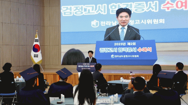 [¹Ìµð¾îÀü³² °í±Ô¼® ±âÀÚ] Àü¶ó³²µµ±³À°Ã»Àº 26ÀÏ ¿ÀÈÄ 2½Ã û»ç 2Ãþ ´ëȸÀǽǿ¡¼ ¡®2023³â Á¦2ȸ ÃÊ¡¤Áß¡¤°íÁ¹ °ËÁ¤°í½Ã ÇÕ°ÝÁõ¼ ¼ö¿©½Ä¡¯À» °¡Á³´Ù. À̳¯ ¼ö¿©½Ä¿¡´Â ÃÖ°í·É ¹× ´Ù¹®È °¡Á¤, Çб³ ¹Û û¼Ò³â µî Ưº°ÇÑ »ç¿¬À» °¡Áø¡¦
