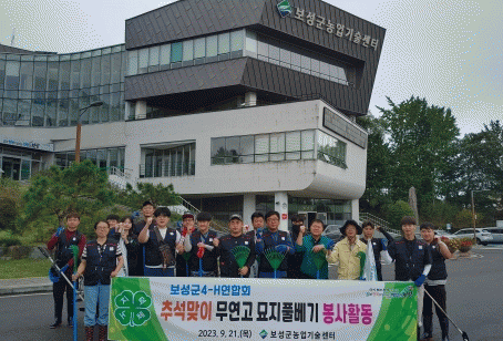 [¹Ìµð¾îÀü³² Á¦°¥´ëÁ¾ ±âÀÚ]º¸¼º±ºÀº Áö³ 21ÀÏ º¸¼º±º 4-H¿¬ÇÕȸ ȸ¿øµéÀÌ ¹ÎÁ· °íÀ¯ÀÇ ´ë¸íÀýÀÎ Ãß¼®À» ¾ÕµÎ°í º¸¼ºÀ¾ ¼ÒÀç °øµ¿¹¦ÁöÀÇ ¹«¿¬°íÀÚ, ³ë¾àÀÚ, ÃâÇâÀÎ µîÀÇ ¹¦Áö 30¿© ±â Ç®º£±â ºÀ»çȰµ¿À» ½Ç½ÃÇß´Ù°í ¹àÇû´Ù. À̳¯ ºÀ»ç¿¡¡¦