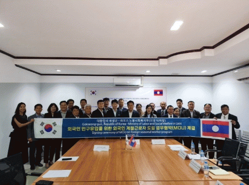 [¹Ìµð¾îÀü³² Á¦°¥´ëÁ¾ ±âÀÚ]°î¼º±ºÀÌ Áö³ 21ÀÏ ¶ó¿À½º¸¦ ¹æ¹®ÇØ ³ëµ¿»çȸº¹ÁöºÎ °í¿ëºÎ ȸÀǽǿ¡¼ ¹Ç¾ÓŸÆÄ¹ç±º°ú ¿Ü±¹ÀÎ °èÀý ±Ù·ÎÀÚ À¯Ä¡¸¦ À§ÇÑ ¾÷¹«Çù¾à(MOU)À» ü°áÇß´Ù°í ¹àÇû´Ù. À̹ø Çù¾à½ÄÀº ³óÃÌÀα¸ °¨¼Ò ¹× °í·ÉÈ·Î ÀÎÇÑ¡¦
