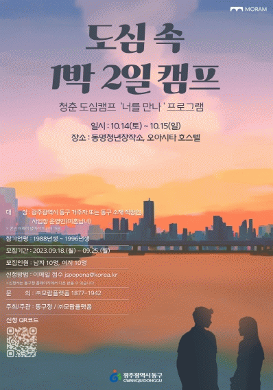 [¹Ìµð¾îÀü³² ±èÁ¤¿ì ±âÀÚ]±¤ÁÖ µ¿±¸´Â ¿À´Â 10¿ù 14~15ÀÏ ¾çÀϰ£ ¹ÌÈ¥³²³à°¡ ¦À» ÀÌ·ï ÁøÇàÇÏ´Â ¡®Ã»Ãá µµ½É Ä·ÇÁ! ³Ê¸¦ ¸¸³ª¡¯ ÇÁ·Î±×·¥À» ÃßÁøÇÑ´Ù°í ¹àÇû´Ù. µ¿±¸ û³âÂü¿©À§¿øÈ¸ÀÇ Á¦¾ÈÀ¸·Î ±âȹµÈ À̹ø ÇÁ·Î±×·¥Àº ¹Ù»Û ÀÏ»óÀ¸·Î ¡¦