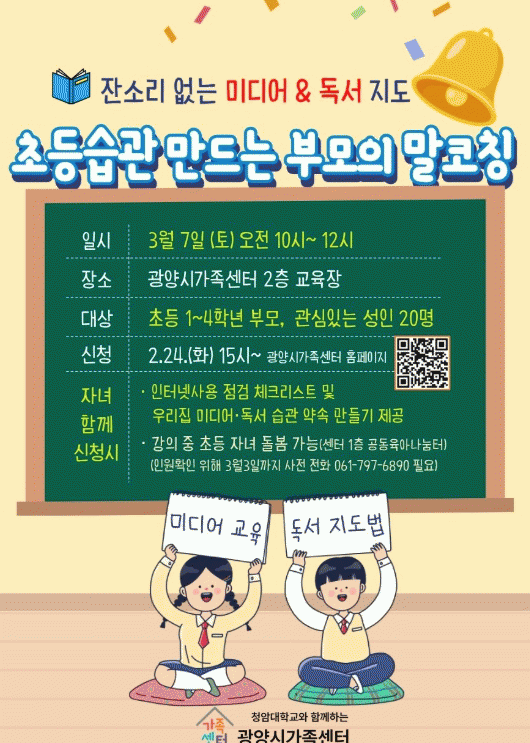 [¹Ìµð¾îÀü³² ÀÓ¼º¿Ï ±âÀÚ]±¤¾ç½Ã°¡Á·¼¾ÅÍ´Â Àü ¼¼´ë¸¦ ¾Æ¿ì¸£´Â ¡®»ý¾ÖÁֱ⺰ ºÎ¸ð±³À°¡¯À» º»°Ý ¿î¿µÇϰí, °¡Á· ±â´É °È¿Í °Ç°ÇÑ ¾çÀ°¹®È È®»ê¿¡ ³ª¼±´Ù. À̹ø ºÎ¸ð±³À°Àº 3¿ù 7ÀÏÀ» ½ÃÀÛÀ¸·Î 12¿ù±îÁö ¼øÂ÷ÀûÀ¸·Î ¿î¿µµÇ¸ç, Àӽ𤡦