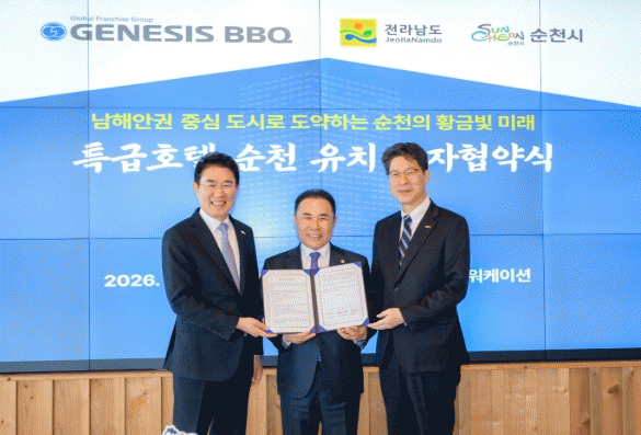 [¹Ìµð¾îÀü³² ÀÓ¼º¿Ï ±âÀÚ]¼øÃµ½Ã´Â 13ÀÏ Àü¶ó³²µµ, Á¦³Ê½Ã½ºBBQ¿Í ÇÔ²² Á¤¿ø¿öÄÉÀ̼Ǽ¾ÅÍ¿¡¼ ¡®Æ¯±ÞÈ£ÅÚ °Ç¸³ µîÀ» À§ÇÑ ÅõÀÚÇù¾à(MOU)¡¯À» ü°áÇß´Ù°í ¹àÇû´Ù. À̹ø Çù¾àÀ¸·Î ¼øÃµ½Ã´Â ±Û·Î¹ú K-Ǫµå ÇÁ·£Â÷ÀÌÁî ±â¾÷ Á¦³Ê½Ã½ºBBQ ±×·ì¡¦