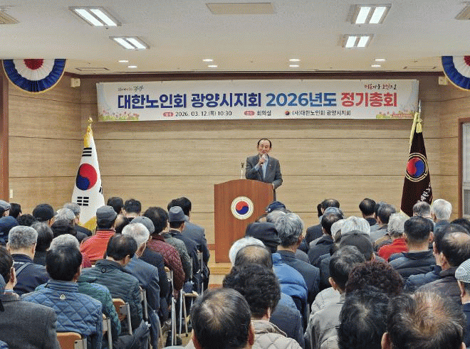 [¹Ìµð¾îÀü³² ÀÓ¼º¿Ï ±âÀÚ]±¤¾ç½Ã´Â Áö³ 12ÀÏ »ó·Ïȸ°ü¿¡¼ (»ç)´ëÇѳëÀÎȸ ±¤¾ç½ÃÁöȸ°¡ 2026³âµµ Á¤±âÃÑȸ¸¦ °³ÃÖÇß´Ù°í ¹àÇû´Ù. À̳¯ ÃÑȸ¿¡´Â 345°³¼Ò °æ·Î´ç ȸÀå°ú Áöȸ ÀÓ¿ø µî 350¿© ¸íÀÌ Âü¼®ÇßÀ¸¸ç, ³ëÀκ¹Áö Çö¾È°ú ¿ÃÇØ ¿î¿µ¡¦