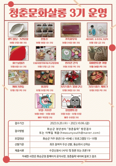 [¹Ìµð¾îÀü³² Á¦°¥´ëÁ¾ ±âÀÚ]ȼø±ºÀº û³âÀÇ ´Éµ¿ÀûÀÎ »çȸ Âü¿© ¹× ¼ÒÅ롤±³·ùÀÇ ±âȸ¸¦ Á¦°øÇϰí, âÀÇÀû Ȱµ¿À» Àå·ÁÇϱâ À§ÇÑ ¡®2023 ȼø±º ûÃá ¹®È »ì·Õ¡¯ 3±â ¼ö°»ýÀ» 9¿ù 20ÀϺÎÅÍ 10¿ù 6ÀϱîÁö ¸ðÁýÇÑ´Ù. À̹ø 3±â ÇÁ·Î±×·¥¡¦