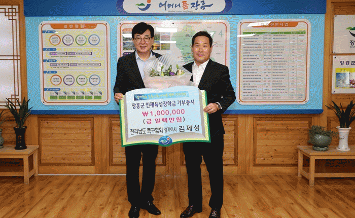 [¹Ìµð¾îÀü³² Á¦°¥´ëÁ¾ ±âÀÚ](Àç)ÀåÈﱺÀÎÀçÀ°¼ºÀåÇÐȸ´Â Áö³ 19ÀÏ Àü¶ó³²µµ Ã౸Çùȸ °æ±âÀ̻簡 ¹é¸¸ ¿øÀÇ ÀåÇбÝÀ» ±âºÎÇß´Ù°í ¹àÇû´Ù. ±èÁ¦¼º Àü¶ó³²µµ Ã౸Çùȸ °æ±âÀÌ»ç´Â Àü ÀåÈﱺ Ã౸Çùȸ ȸÀåÀ» ¿ªÀÓÇßÀ¸¸ç, Çö üÀ°È¸ ÀÌ»ç·Î¡¦