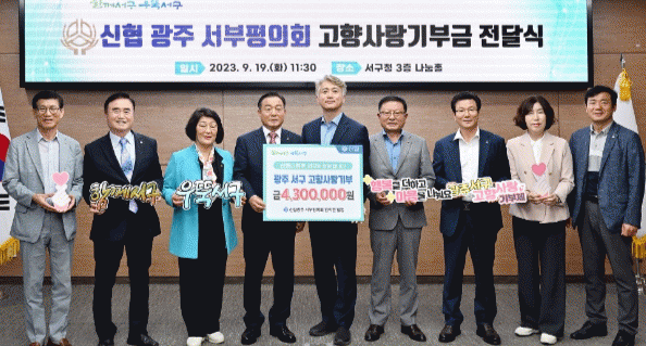[¹Ìµð¾îÀü³² ±èÁ¤¿ì ±âÀÚ]±¤ÁÖ±¤¿ª½Ã ¼±¸´Â 19ÀÏ ¼±¸Ã» ³ª´®È¦¿¡¼ ½ÅÇù±¤ÁÖ ¼ºÎÆòÀÇȸ Á¶ÇÕ ÀÓÁ÷¿øÀ¸·ÎºÎÅÍ °íÇâ»ç¶û±âºÎ±Ý 430¸¸¿øÀ» ±âŹ¹Þ¾Ò´Ù. ½ÅÇù±¤ÁÖ ¼ºÎÆòÀÇȸ´Â ¼±¸¿Í ³²±¸¿¡ ±Ù°ÅÁö¸¦ µÐ 12°³ Á¶ÇÕ(±¤Áֽſ졤³²±¤ÁÖ¡¤¿Í¡¦