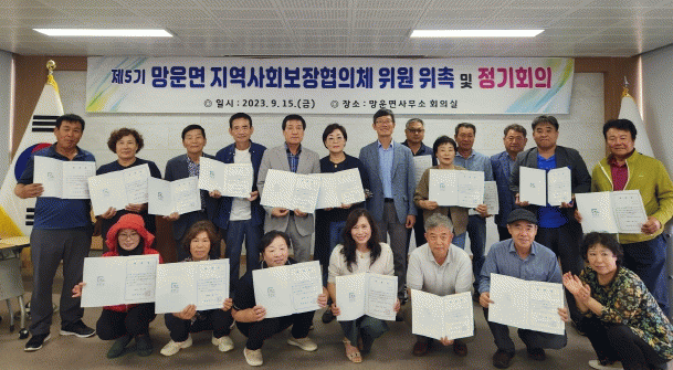 [¹Ìµð¾îÀü³² ±èÆÇ±¹ ±âÀÚ]¹«¾È±º ¸Á¿î¸éÀº Áö³ 15ÀÏ È¸Àǽǿ¡¼ Á¦5±â ¸Á¿î¸é Áö¿ª»çȸº¸ÀåÇùÀÇü À§ÃË½Ä ¹× Á¤±âȸÀǸ¦ °³ÃÖÇß´Ù. »õ·Î Ãâ¹üÇÏ´Â Á¦5±â ¸Á¿î¸éÁö¿ª»çȸº¸ÀåÇùÀÇü´Â ÃÑ 24¸íÀÇ À§¿øÀ¸·Î ±¸¼ºµÆÀ¸¸ç, ½Å±Ô À§¿ø À§ÃË ¹×¡¦