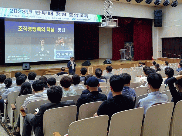 [¹Ìµð¾îÀü³² ±èÁ¤¿ì ±âÀÚ]±¤ÁÖ µ¿±¸´Â Àü Á÷¿øÀ» ´ë»óÀ¸·Î °øÁ÷ÀÚÀÇ ¿Ã¹Ù¸¥ û·Å À±¸®°ü È®¸³°ú °øÁ¤Çϰí Åõ¸íÇÑ ÇàÁ¤À» ±¸ÇöÇϰíÀÚ ¿Â¿ÀÇÁ¶óÀÎ ¡®¹ÝºÎÆÐ û·Å Á¾ÇÕ±³À°¡¯À» ÁøÇàÇß´Ù°í 15ÀÏ ¹àÇû´Ù. À̳¯ ±³À°Àº °øÁ¤ÇÑ ¾÷¹«¼öÇà¿¡ ÇÊ¡¦