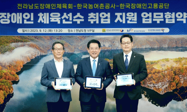 [¹Ìµð¾îÀü³² Á¦°¥´ëÁ¾ ±âÀÚ]Àü¶ó³²µµÀå¾ÖÀÎüÀ°È¸´Â 12ÀÏ Àü³²µµÃ»¿¡¼ Çѱ¹³ó¾îÃ̰ø»ç, Çѱ¹Àå¾ÖÀΰí¿ë°ø´Ü°ú Àü±¹ ÃÖ´ë ±Ô¸ð ¡®Àå¾ÖÀΠüÀ°¼±¼ö Ãë¾÷ Áö¿ø¡¯ ¾÷¹«Çù¾àÀ» Çß´Ù. Çù¾à½Ä¿¡´Â Àü³²µµÀå¾ÖÀÎüÀ°È¸ÀåÀÎ ±è¿µ·Ï Àü³²µµÁö»ç¿Í¡¦