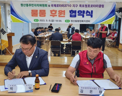 [¹Ìµð¾îÀü³² °í±Ô¼® ±âÀÚ]¿ø»êµ¿ÁÖ¹ÎÀÚÄ¡À§¿øÈ¸¿Í ±¹Á¦·ÎŸ¸®3710Áö±¸ ¸ñÆ÷ûȣ·ÎŸ¸®Å¬·´ÀÌ Áö³ 8ÀÏ ¿ø»êµ¿ÇàÁ¤º¹Áö¼¾ÅÍ¿¡¼ ¹°Ç° ÈÄ¿ø Çù¾àÀ» ü°áÇß´Ù. À̹ø Çù¾àÀº ¿ø»êµ¿ÁÖ¹ÎÀÚÄ¡À§¿øÈ¸°¡ »çȸÀû Áö¿øÀÌ Àý½ÇÀÌ ÇÊ¿äÇÑ Ãë¾à°èÃþÀ»¡¦
