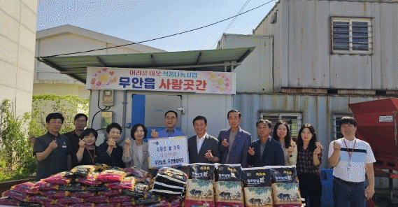[¹Ìµð¾îÀü³² ±èÆÇ±¹ ±âÀÚ]¹«¾È±º ¹«¾ÈÀ¾Àº 11ÀÏ ¹«¾È³óÇù°ú ¹«¾ÈÅëÇÕRPC(Áö»çÀå ±è±¤Çõ)·ÎºÎÅÍ ¡®»ç¶ûÀÇ ½Ò¡¯À» ±âŹ¹Þ¾Ò´Ù°í ¹àÇû´Ù. ¹«¾È³óÇùÀº ½Ò(5kg) 50Æ÷¸¦, ¹«¾ÈÅëÇÕRPC´Â ½Ò(10kg) 20Æ÷¸¦ °¢°¢ ±âŹÇßÀ¸¸ç, ÀÌ´Â ÃÑ 150¸¸ ¿ø »ó¡¦