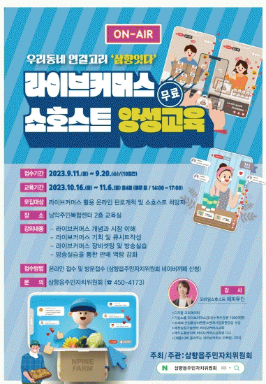 [¹Ìµð¾îÀü³² ±èÆÇ±¹ ±âÀÚ]¹«¾È±º »ïÇâÀ¾ÁÖ¹ÎÀÚÄ¡À§¿øÈ¸´Â ¿ì¸® Áö¿ªÀÇ Æ¯»ê¹°, °ü±¤ÀÚ¿ø µî Ȱ¿ë ¿Â¶óÀÎ ½ÃÀå °æÀï·Â °È ¹× Áö¿ª°æÁ¦ Ȱ¼ºÈ¸¦ À§ÇÏ¿© ¡®»ïÇâÀÕ´Ù ½Ç½Ã°£ ¼ÒÅëÆÇ¸Å(¶óÀ̺êÄ¿¸Ó½º) ¹æ¼ÛÆÇ¸ÅÀÚ(¼îÈ£½ºÆ®) ¾ç¼º ±³À°¡¯ ½Ç¹«¡¦